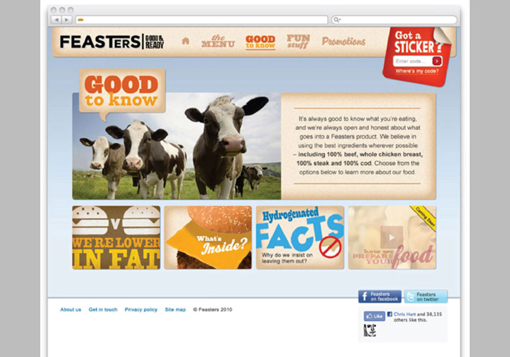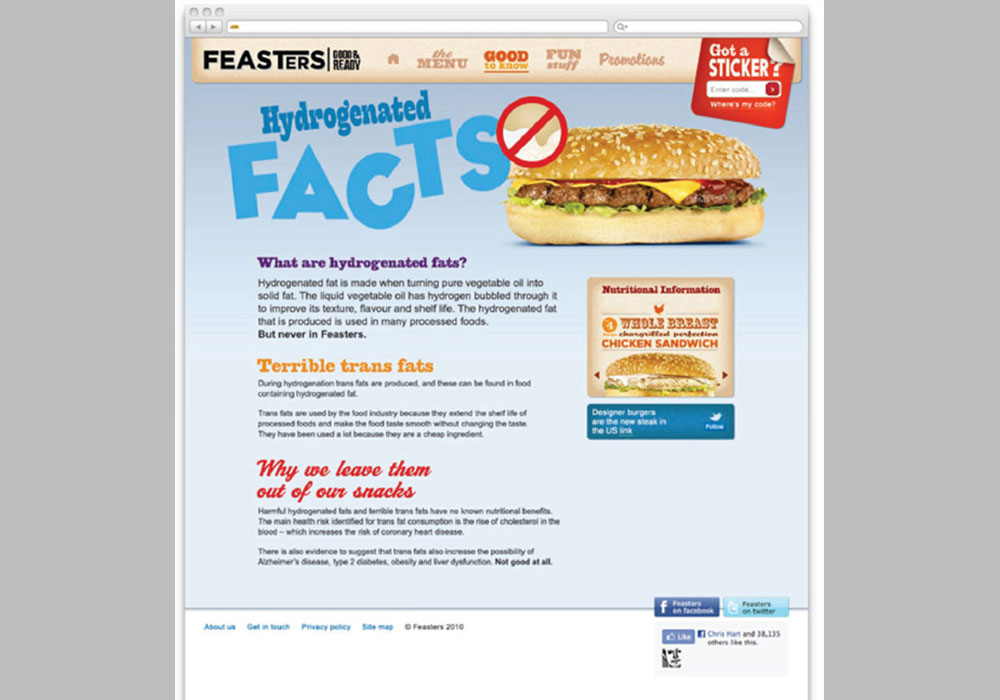 Using playful, conversational language and bold typography, we gave Feasters a light, bright, friendly look and feel – playing upon the traceable ingredients and complete lack of hydrogenated fats.