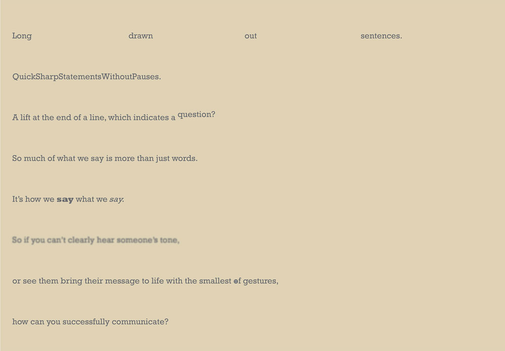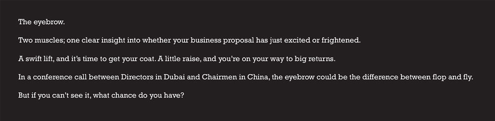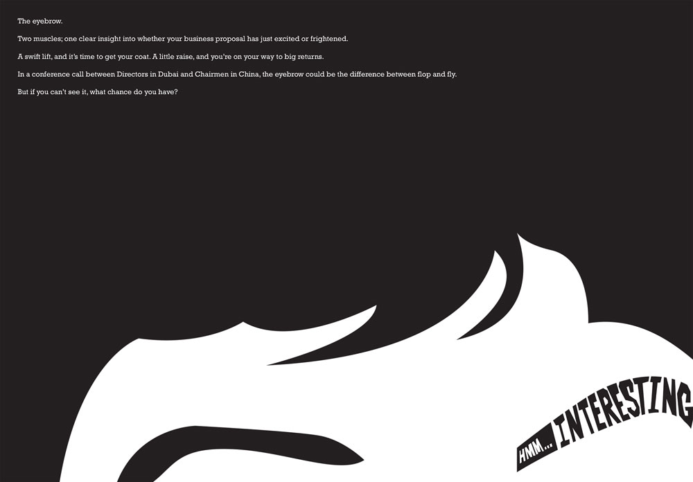 Working with an art director, I put together a book of copy-focused, yet visually impactful ideas to express the importance of seeing the person on the other end of the line.